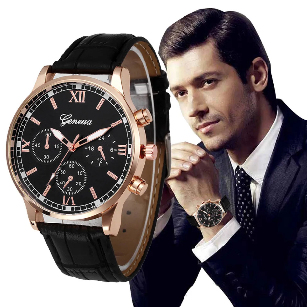 Ceas Barbatesc Geneva Casual Elegant Negru / Rose-Gold