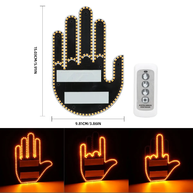 Accesoriu auto luminos cu telecomanda in forma de mana cu 3 Moduri: Salut, Cool si Deget Mijlociu,